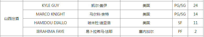山西男篮的全新四外援阵容出炉,分别是迪亚洛、奈特、法耶与盖伊。